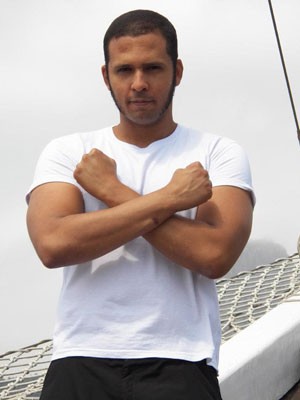 Eron faz pose sem a fantasia de super-herói